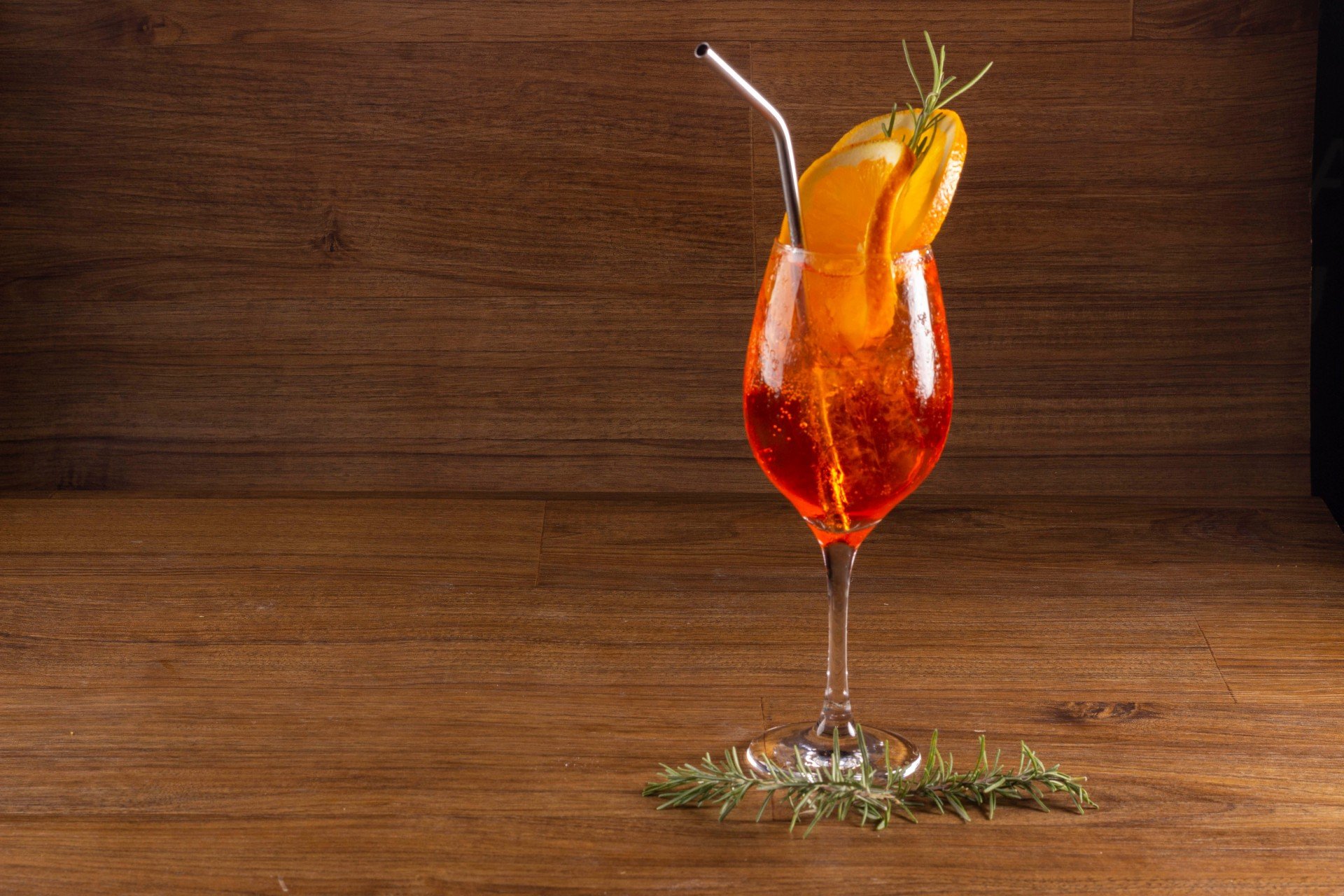 Gin Kalvelage, pétalas de hibisco, laranja e tônica orgânica Wewi.