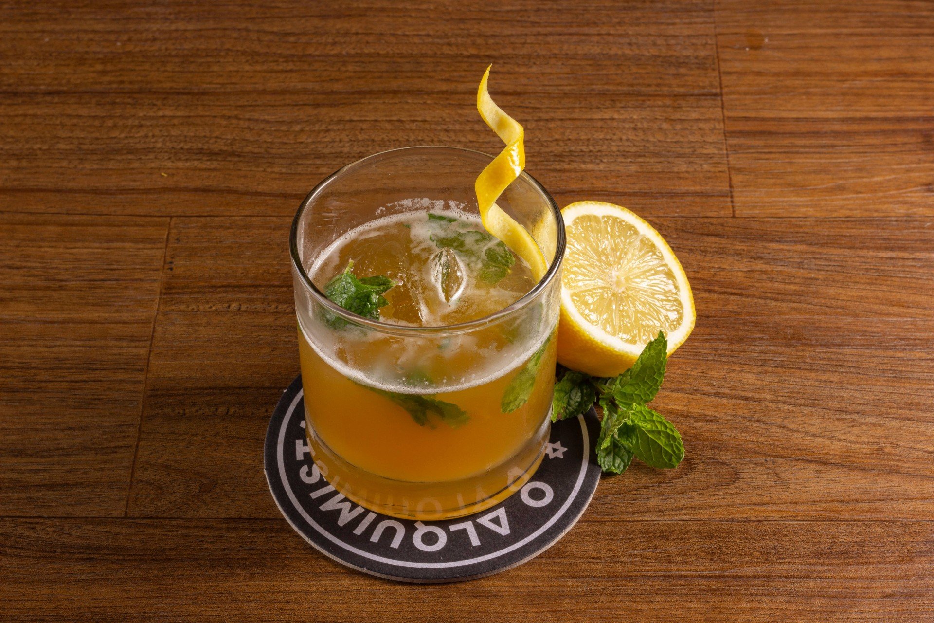 Whisky Bourbon, hortelã, suco de limão siciliano, gengibre e mel.