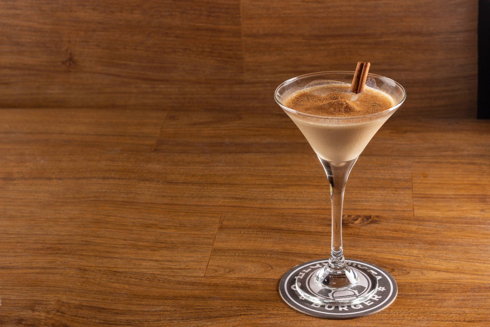 Amarula, whisky Bourbon, sorvete de creme, canela em pau e canela em pó.