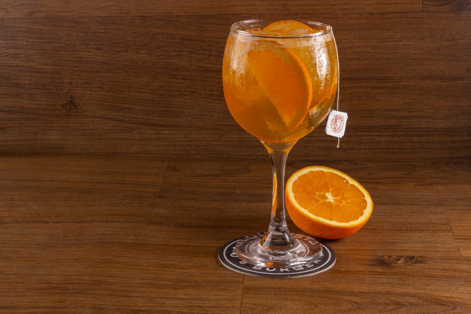 Gin Kalvelage, sachê de chá preto, laranja e tônica orgânica Wewi.